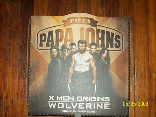I had taken a picture of a special promotional limited-edition pizza box from Papa Johns, just when the X-Men Origins: Wolverine was released in May'09. Sharing it with you guys...