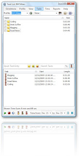 Create new tasks, start the timer. Finish the task, stop the timer. This can help you maintain an accurate time-sheet of your work. As soon as I started using this tool on my laptop, I started using my time more productively. I sue this tool in combination with the "To-Do" app of my iPod. One good feature is the Reports tool which helps you see a breakdown of the total time recorded at the end of the week/month. Just be honest to yourself while recording the times, to get an accurate report. For managers, it can be a great small tool (size - 4.3Megs) to manage your project. Additionally, you can export the task list into an XML file.